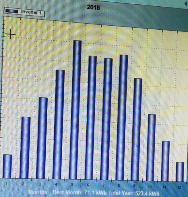 Leistungsertrag 2011 (erbaut) 3,16MWh Leistungsertrag 2012 6,74MWh Leistungsertrag 2013 6,53MWh Leistungsertrag 2014 5,57MWh Leistungsertrag 2015 6,79MWh Zählerstand 30.6.2016 32,363MWh Zählerstand 30.6.2017 38,558MWh Zählerstand 30.6.2018 44,616MWh Zählerstand 30.6.2019 51,680MWh Zählerstand 30.6.2020 58,111MWh Zählerstand 30.6.2021 Wasser Strom 01.01.2015 22000 kWh/BS 7265 Ertrag 01.02.2015 22167 kWh/BS 7361 167kWh 01.03.2015 22518 kWh/BS 7501 351kWh 01.04.2015 23071 kWh/BS 7710 553kWh 01.05.2015 24079 kWh/BS 7991 1008kWh 01.06.2015 24956 kWh/BS 8274 877kWh 01.07.2015 25767 kWh/BS 8577 811kWh 12kWh 3Tage 01.08.2015 26648 kWh/BS 8857 881kWh 82kWh 34 Tage 01.09.2015 27381 kWh/BS 9086 733kWh 148kWh 65 Tage 01.10.2015 27998 kWh/BS 9298 617kWh 190kWh 96 Tage 01.11.2015 28326 kWh/BS 9422 328kWh 222kWh 127 Tage 01.12.2015 28602 kWh/BS 9528 276kWh 245kWh 157 Tage 01.01.2016 28792 kWh/BS 9618 190kWh 263kWh 188 Tage 01.02.2016 28992 kWh/BS 9698 200kWh 284kWh 219 Tage 01.03.2016 29213 kWh/BS 9797 221kWh 305kWh 248 Tage 01.04.2016 29803 kWh/BS 9988 590kWh 353kWh 279 Tage 01.05.2016 30591 kWh/BS10222 788kWh 400kWh 309 Tage 01.06.2016 31358 kWh 767 kWh 469kWh 339 Tage 01.07.2016 32363 kWh 1005kWh 553kWh 370 Tage 01.08.2016 33343 kWh 980kWh 629kWh 401 Tage